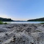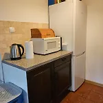 The Suleczyno property has a microwave, a fridge, and kitchenware right in an equipped kitchen.